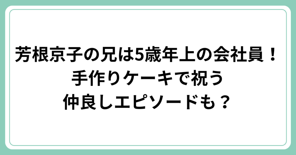 女優として活躍する芳根京子さんには、5歳年上のお兄さんがいることをご存知でしょうか? 芳根京子さんは家族との仲の良さでも知られており、特にお兄さんとのエピソードは多くのファンの心を温めています。 今回は、芳根京子さんのお兄さんについて、年齢... -