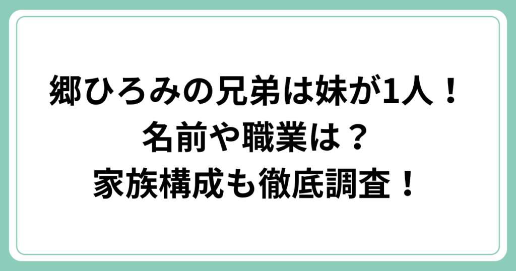 永遠の若大将として知られる郷ひろみさん。 60代後半になった今でも変わらぬ若々しさとパフォーマンスで多くのファンを魅了し続けていますよね。 そんな郷ひろみさんの兄弟について気になっている方も多いのではないでしょうか? この記事では、郷ひろみさ...