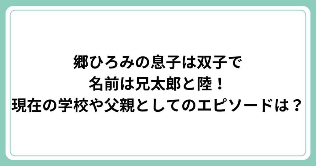 郷ひろみの息子は双子で名前は兄太郎と陸!現在の学校や父親としてのエピソードは?