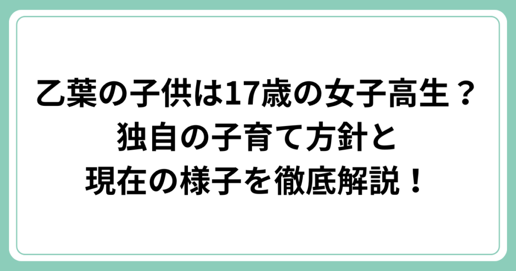 乙葉の子供は17歳の女子高生?独自の子育て方針と現在の様子を徹底解説!