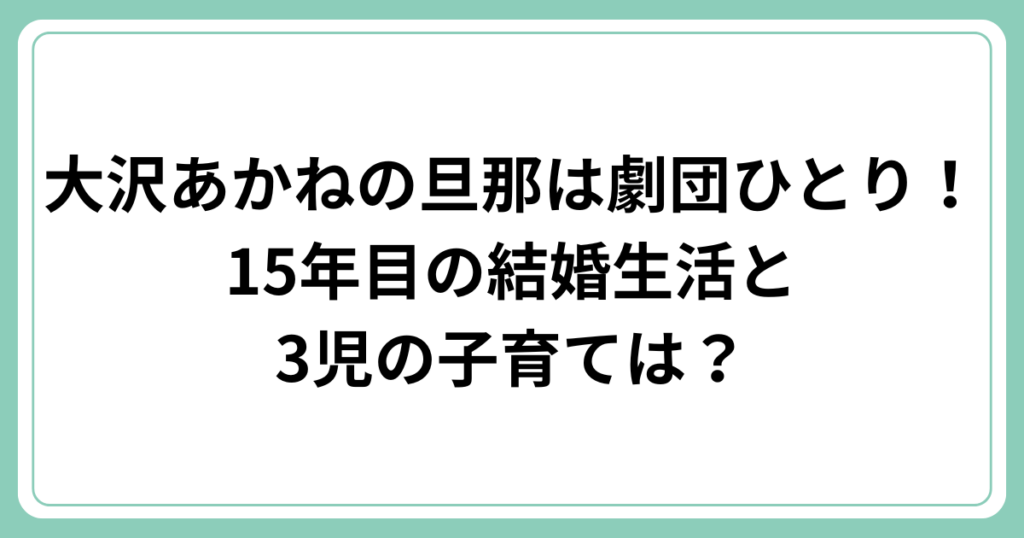 大沢あかねの旦那は劇団ひとり!15年目の結婚生活と3児の子育ては?