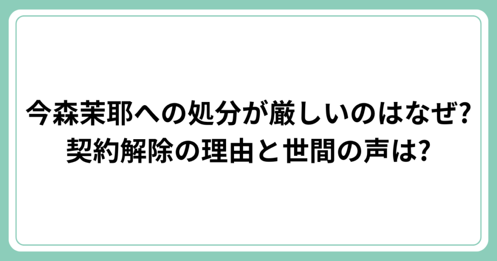 今森茉耶への処分が厳しいのはなぜ?契約解除の理由と世間の声は?
