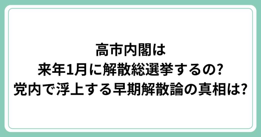 高市内閣は来年1月に解散総選挙するの?党内で浮上する早期解散論の真相は?