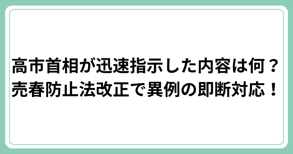 高市首相が迅速指示した内容は何?売春防止法改正で異例の即断対応!