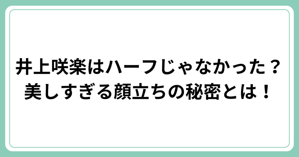 井上咲楽はハーフじゃなかった?美しすぎる顔立ちの秘密とは!