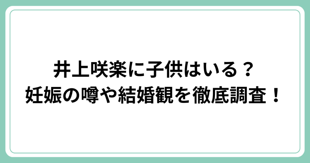 井上咲楽に子供はいる?妊娠の噂や結婚観を徹底調査!