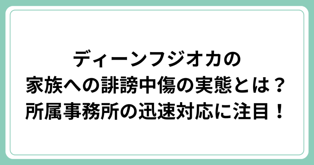 ディーンフジオカさんの家族に対する誹謗中傷が大きな問題となっています。 今回は、この問題の実態と所属事務所の対応について詳しく見ていきましょう。 ディーンフジオカさんのファンの皆さんや、芸能界の動向に関心がある方々にとって、重要な情報をお... -