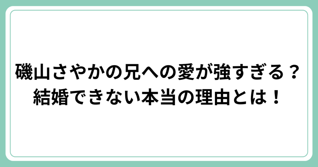 磯山さやかの兄への愛が強すぎる?結婚できない本当の理由とは!