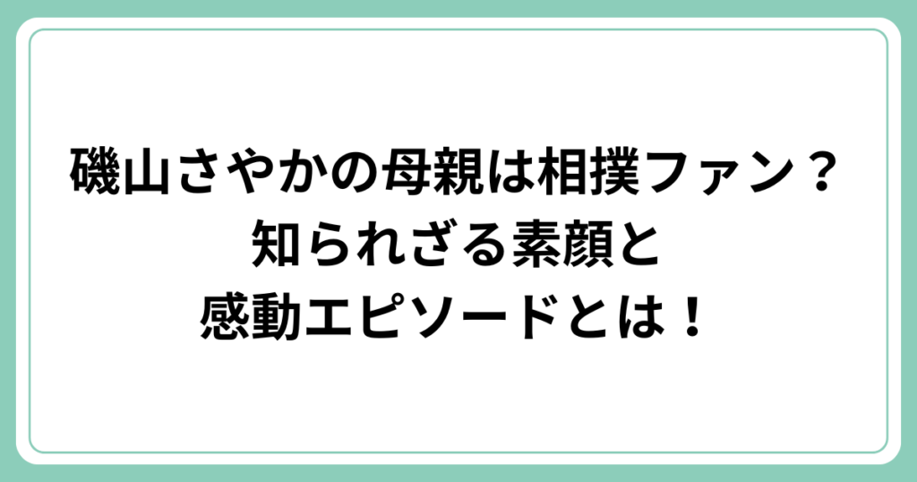 磯山さやかの母親は相撲ファン?知られざる素顔と感動エピソードとは!