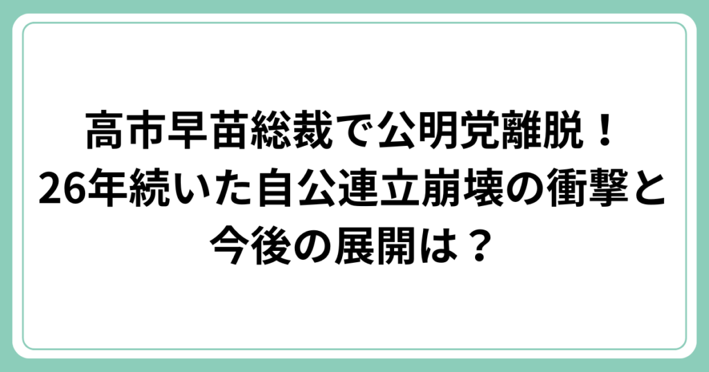高市早苗総裁で公明党離脱!26年続いた自公連立崩壊の衝撃と今後の展開は?