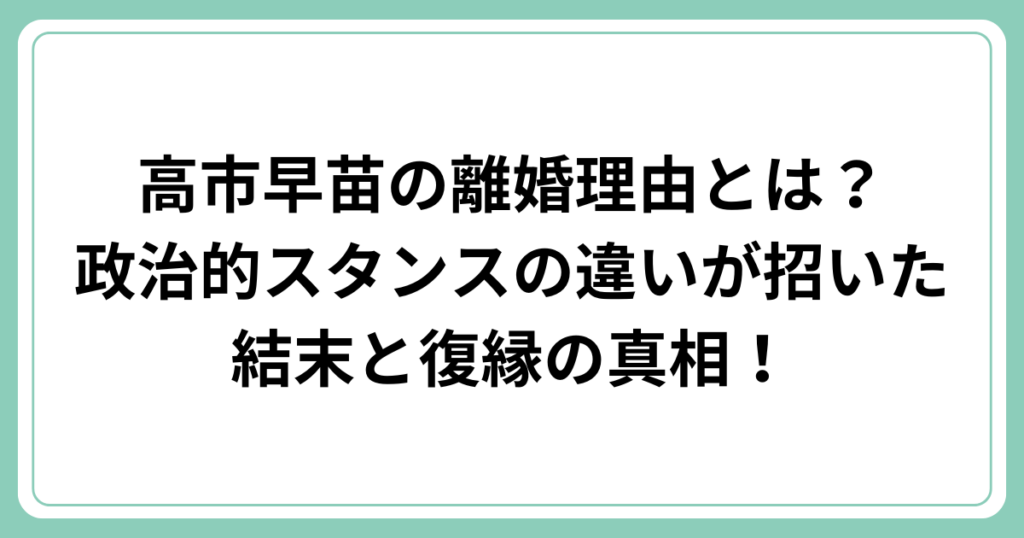 高市早苗の離婚理由とは?政治的スタンスの違いが招いた結末と復縁の真相!