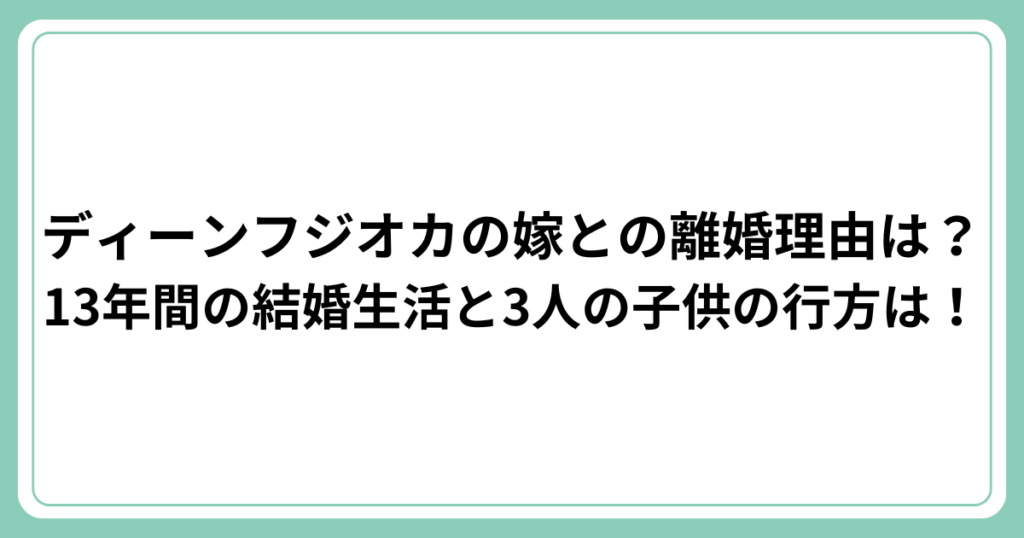 ディーンフジオカさんが嫁との離婚を発表しました。 13年間の結婚生活に幕を下ろすことになったその理由とは? そして3人の子供たちの今後はどうなるのでしょうか? この記事では、ディーンフジオカさんと嫁の離婚に関する最新情報をお伝えします。 ディー... -