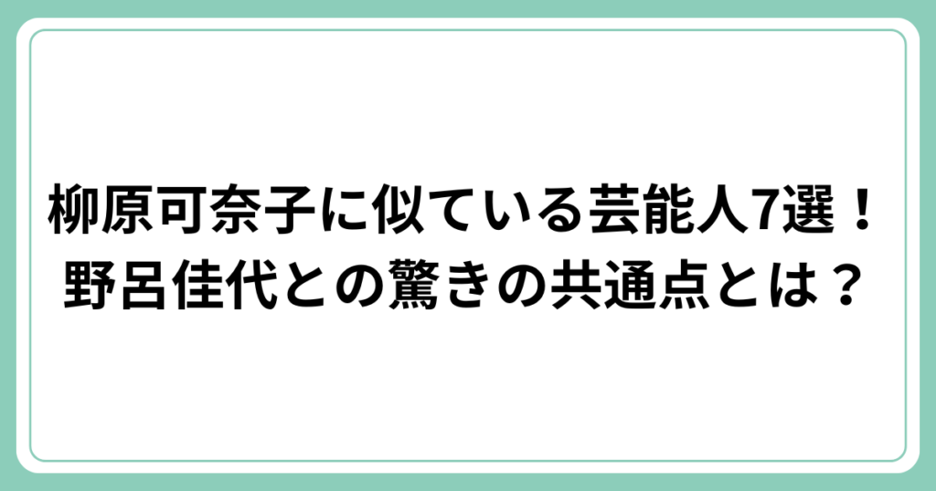 芸能界には、似ている芸能人がたくさんいますよね。 今回は、個性的な容姿と笑いのセンスで人気の柳原可奈子さんに似ている芸能人について、詳しくご紹介します。 特に注目なのは、柳原可奈子さんとよく似ていると言われる野呂佳代さんとの驚きの共通点で... -
