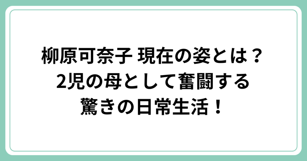 かつてお笑い芸人として人気を博した柳原可奈子さん。 現在39歳となった彼女は、2児の母として新たな人生のステージを歩んでいます。 テレビでの活躍はもちろん、プライベートでも充実した日々を送る柳原さんの現在の姿に、多くの人が注目しています。 今... -