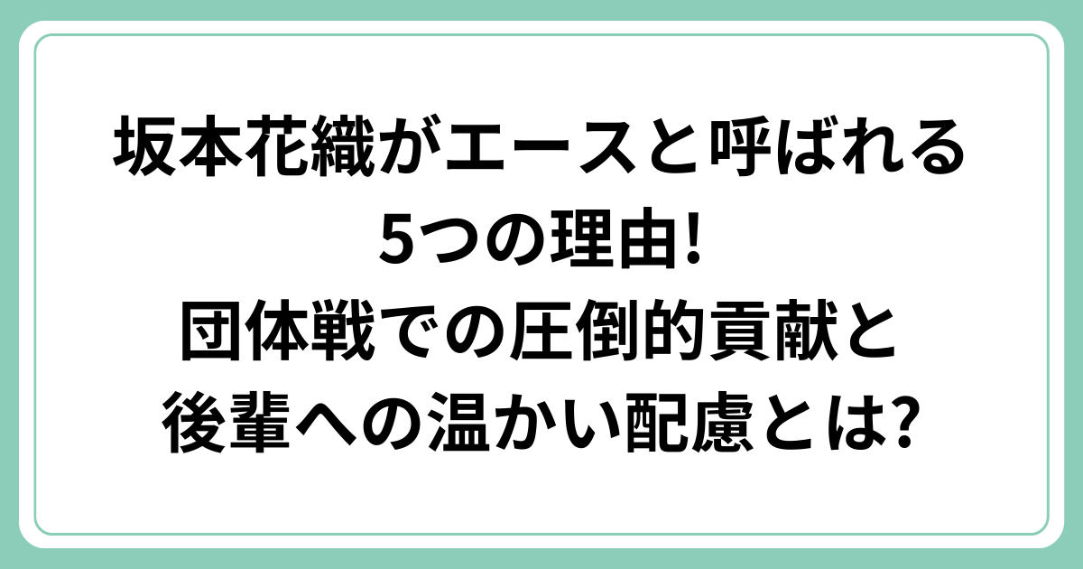 坂本花織選手は「エース」として日本チームを牽引し続けていますが、なぜ彼女がエースと呼ばれるのでしょうか?