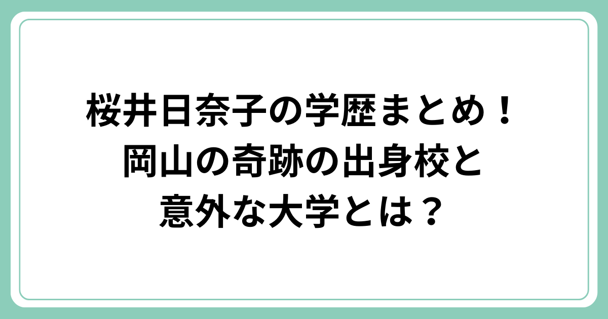 「岡山の奇跡」と呼ばれる美貌で注目を集めていますが、その学歴についてはあまり知られていないかもしれません。