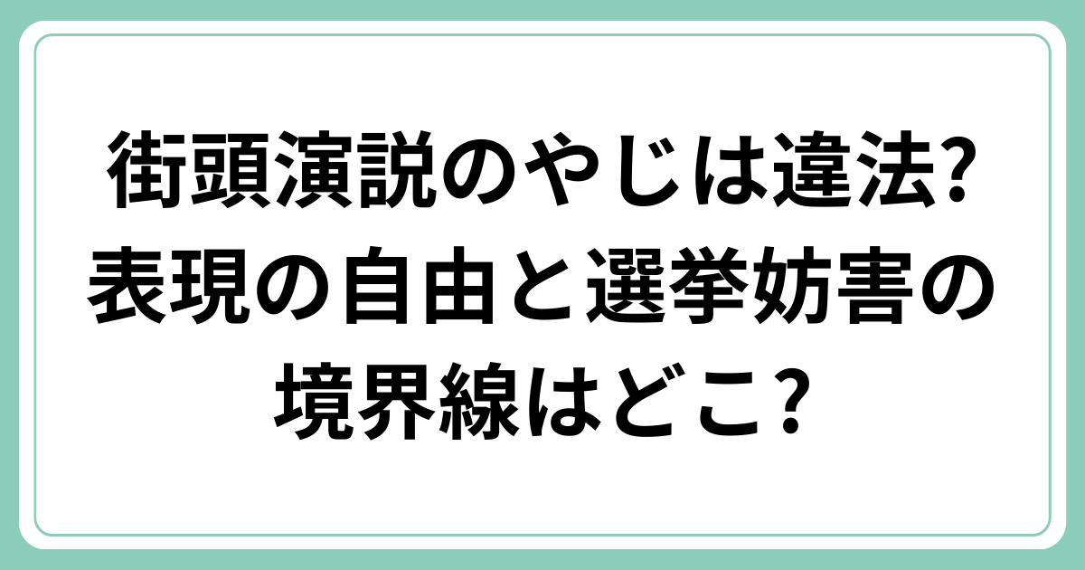 政治的意見を表明する程度のやじは違法ではありませんが、拡声器を使って演説を完全にかき消すなど過度な妨害行為は選挙妨害罪に該当する可能性があります。