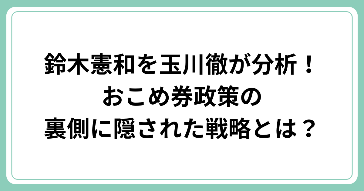 この発言の背景には、おこめ券政策が単なる思いつきではなく、綿密に計算された戦略であるという玉川氏の見立てがあります。