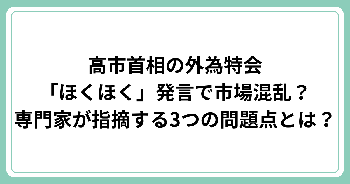 高市首相の外為特会「ほくほく」発言は、為替市場に大きな混乱をもたらしました。