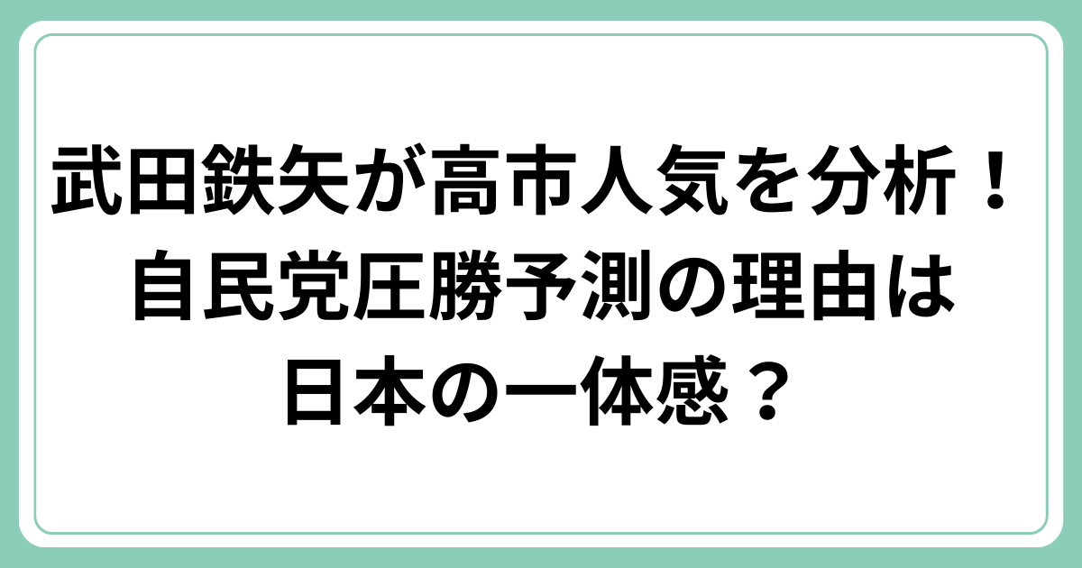 武田氏は、日本全体が高市・自民党を支持することで一体感を求めているのではないか、との見方を示したのです。