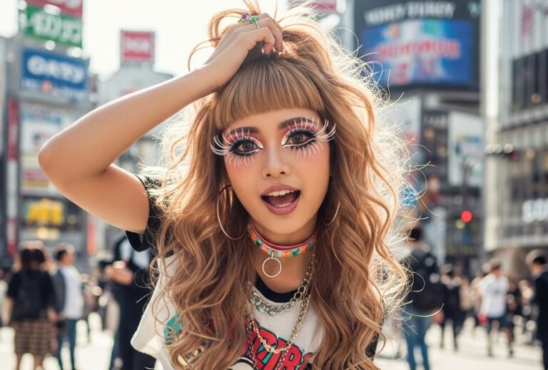 金髪やハイトーンカラーの派手な髪型、つけまつげバッチリのギャルメイク、そして当時流行していたギャルファッション。